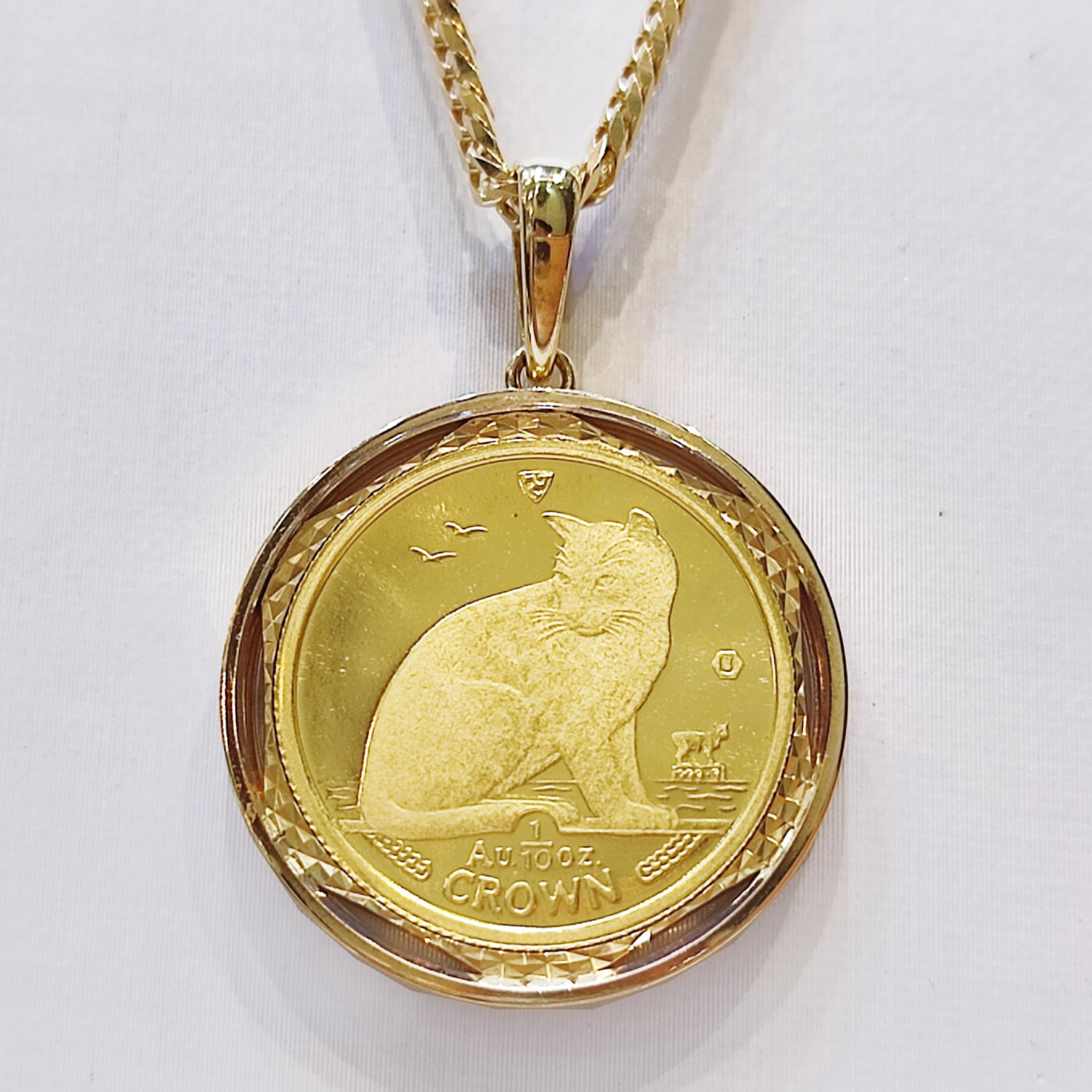 イギリス領マン島政府発行の人気シリーズ【マン島キャット金貨】1/10オンスのペンダントトップ。
