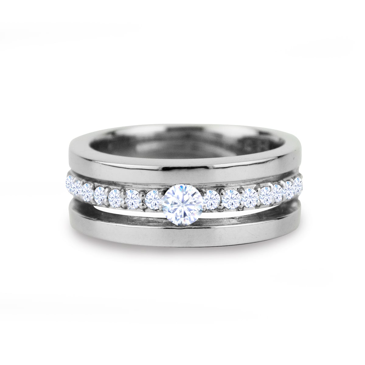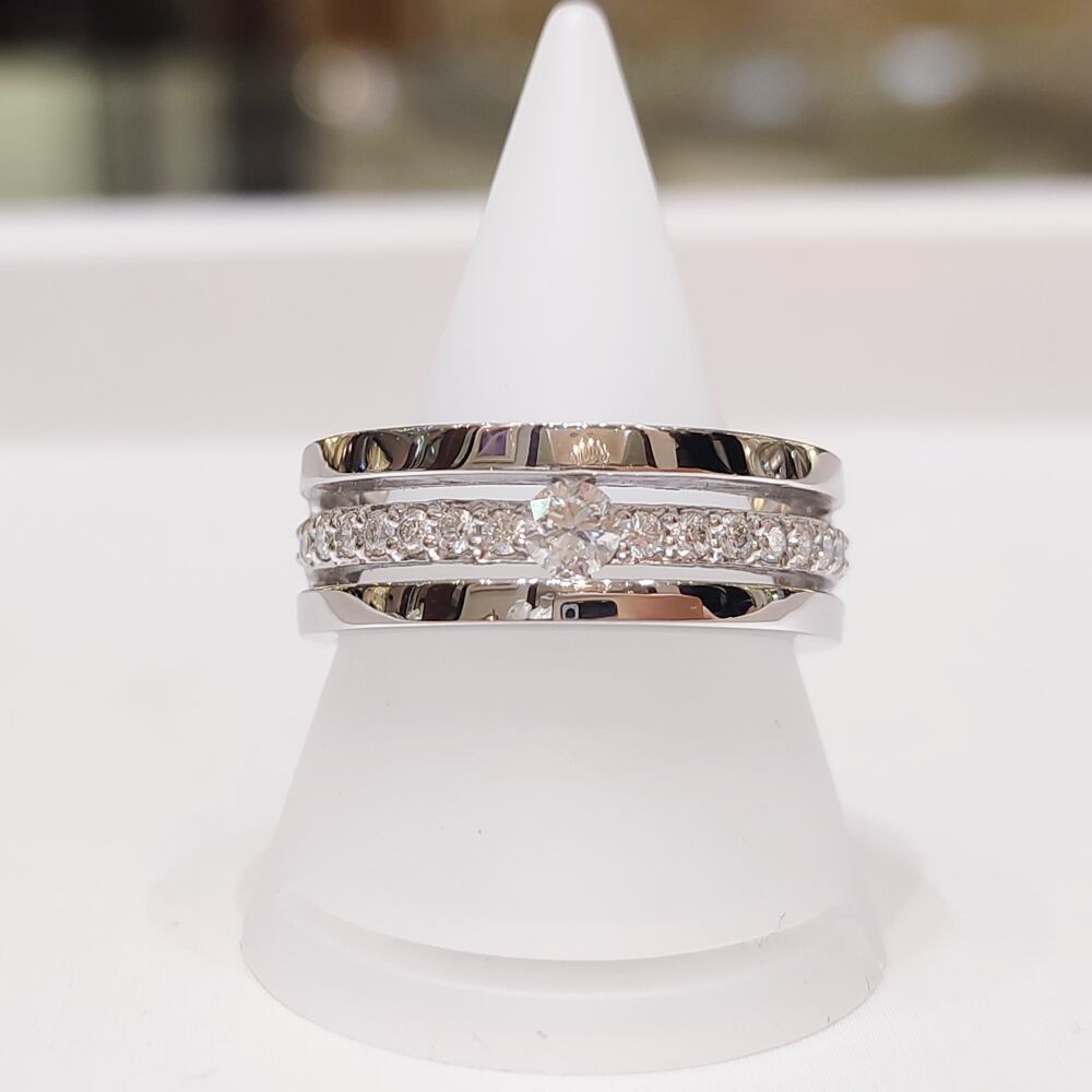 0.32ctのダイヤモンドを中心に、両サイドに8石ずつ合計0.194ctのメレダイヤが埋め込まれた豪華なリングです。