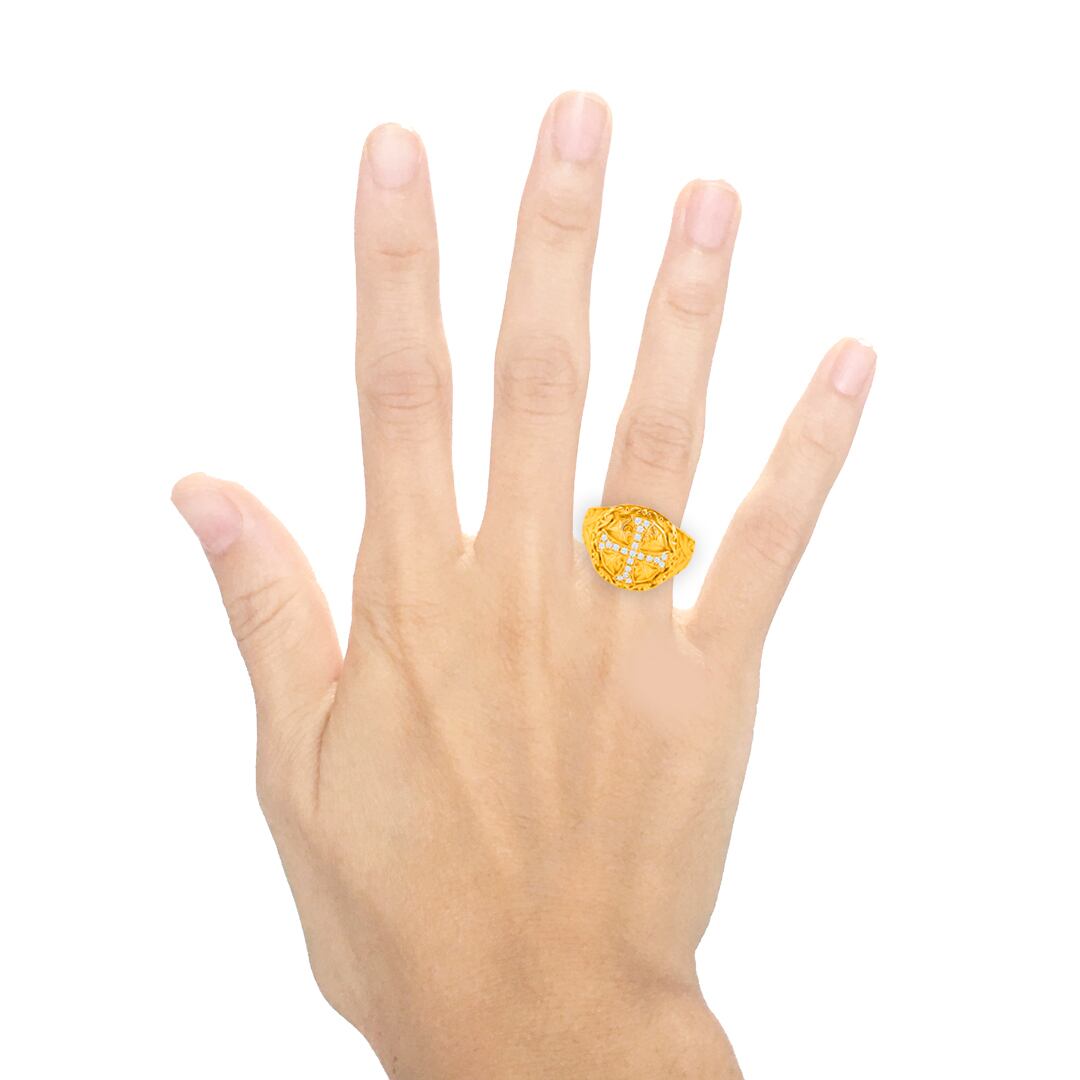 クラシカルなデザインとモダンな要素が融合されたメンズダイヤモンドゴールドリング。